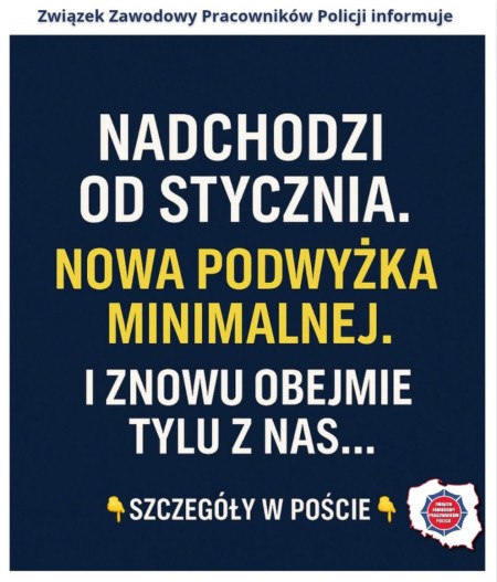 ✍️ Idą podwyżki dla wielu z nas… szkoda tylko, że nie dzięki docenieniu naszej pracy, a przez ustawowe minimum... Wstyd dla Rządu i wszystkich decydentów, którzy od tylu lat nie podejmują decyzji i nie niwelują tej patologii w wynagrodzeniach pracowników Policji. ❌️