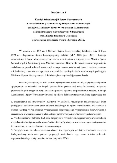 Dlatego, wychodząc naprzeciw tym oczekiwaniom, publikujemy treść dezyderatu z dnia 18 grudnia br., uchwalonego przez Komisję Administracji i Spraw Wewnętrznych 📄.
