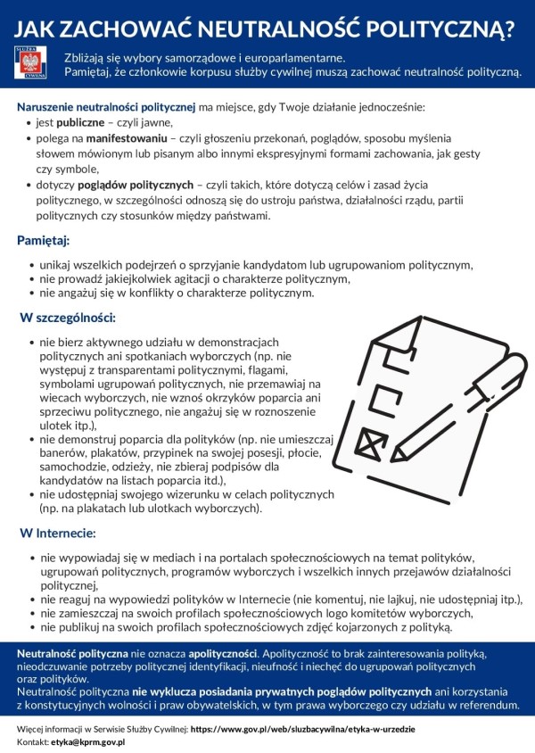 📖 Jako organizacja, której priorytetem od lat jest doskonalenie naszych umiejętności, pragniemy podzielić się z Wami materiałem pt. "Jak zachować neutralność polityczną", przygotowanym przez KPRM. Wierzymy, że zawarte tam wskazówki pomogą nam wszystkim zachować równowagę i profesjonalizm w tym ważnym okresie.