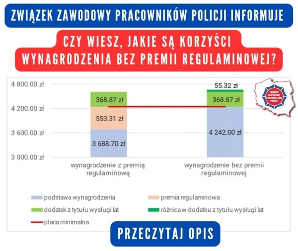 🔴 Ponadto wynagrodzenie zasadnicze wraz z premią regulaminową stanowią wartość porównywaną z wynagrodzeniem minimalnym. 😞