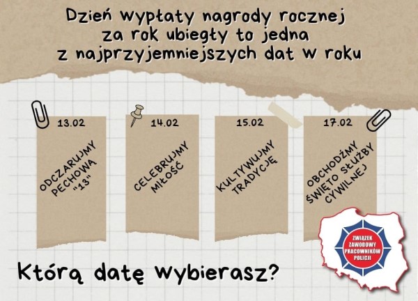 Niebawem otrzymamy zasłużoną nagrodę roczną za trud i zaangażowaną pracę w roku 2023. Jak co roku data wypłaty jest owiana tajemnicą 🤔 Dlaczego? Nie wiemy, ale zapraszamy Was do wskazania swojej daty "szczęścia" w 2024 roku.