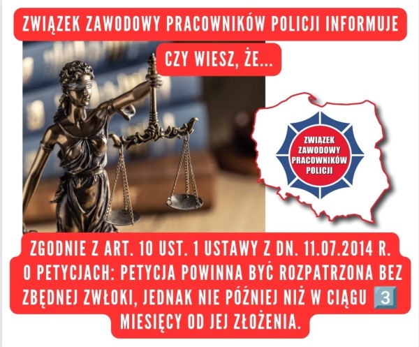 ❗🤔 Czy wiesz, że mija 2. miesiąc od doręczenia, przez nasz związek zawodowy, w dniu 1 grudnia 2023 roku do Kancelarii Prezydenta RP, petycji zawierającej 2 postulaty w sprawie pracowników Policji dotyczących: