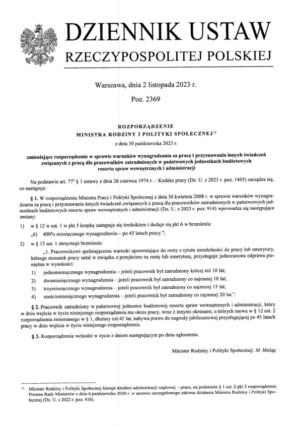 ☑️ Od tego dnia pracownikom szkół Policji przysługiwać będzie, z chwilą przejścia na rentę lub emeryturę, po przepracowaniu co najmniej 20 lat, odprawa pieniężna w wysokości sześciomiesięcznego wynagrodzenia! ✌️
