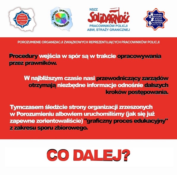 O kolejnych działaniach Porozumienia Organizacji Związkowych Reprezentujących Pracowników Policji będziemy informować na bieżąco.