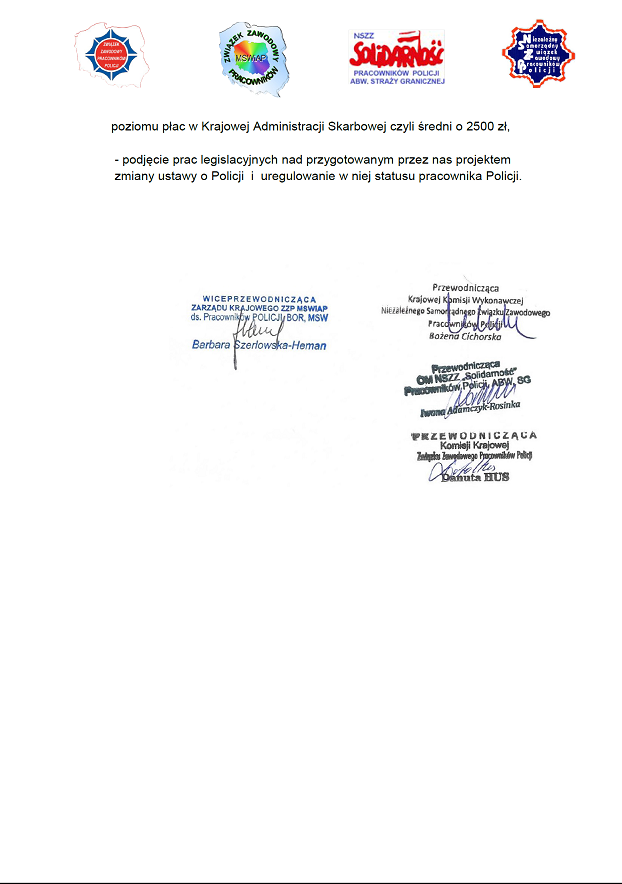 Organizacje związkowe zrzeszające pracowników Polska Policja wnoszą do Sekretarza Stanu w Ministerstwo Spraw Wewnętrznych i Administracji o przedyskutowanie: